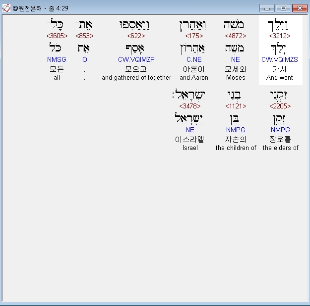 히브리어구약BHS,29 וַיֵּלֶךְ מֹשֶׁה וְאַהֲרֹן וַיַּאַסְפוּ אֶת־כָּל־זִקְנֵי בְּנֵי יִשְׂרָאֵל׃