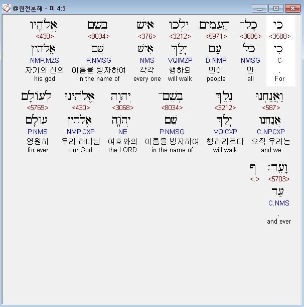 영어NASB,5 Though all the peoples walk Each in the name of his god, As for us, we will walk In the name of the LORD our God forever and ever.