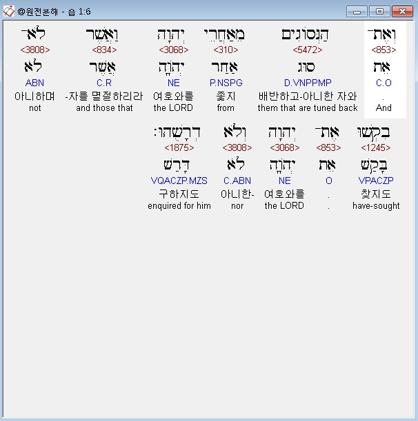 히브리어구약BHS,6 וְאֶת־הַנְּסֹוגִים מֵאַחֲרֵי יְהוָה וַאֲשֶׁר לֹא־בִקְשׁוּ אֶת־יְהוָה וְלֹא דְרָשֻׁהוּ׃