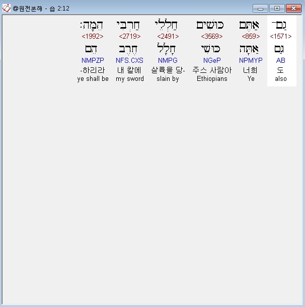 영어NRSV,12 You also, O Ethiopians, shall be killed by my sword.