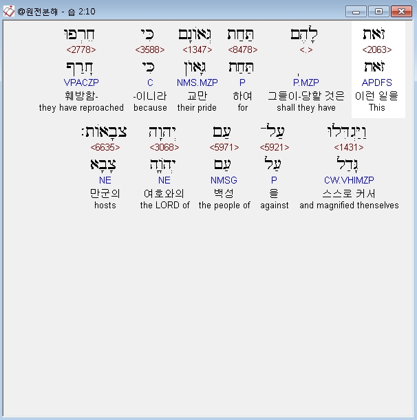 히브리어구약BHS,10 זֹאת לָהֶם תַּחַת גְּאֹונָם כִּי חֵרְפוּ וַיַּגְדִּלוּ עַל־עַם יְהוָה צְבָאֹות׃