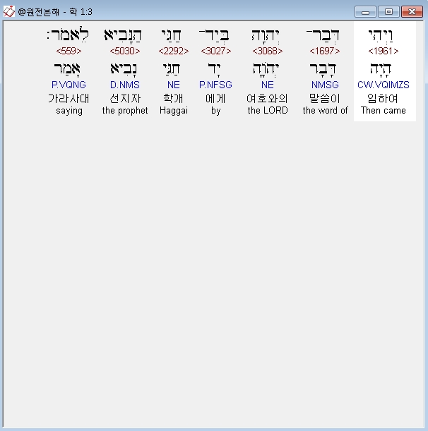 히브리어구약BHS,3 וַיְהִי דְּבַר־יְהוָה בְּיַד־חַגַּי הַנָּבִיא לֵאמֹר׃