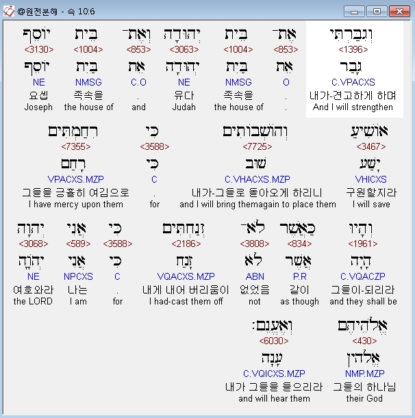 영어NRSV,12 I will make them strong in the LORD, and they shall walk in his name, says the LORD.