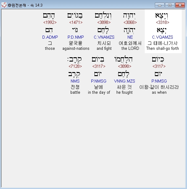 히브리어구약BHS,3 וְיָצָא יְהוָה וְנִלְחַם בַּגֹּויִם הָהֵם כְּיֹום הִלָּחֲמֹו בְּיֹום קְרָב׃