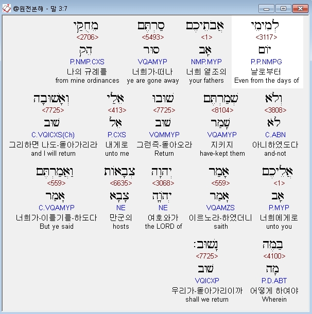 | 히브리어 말라기 1장 전체 원어 원문 성경 공부 주석 강해 설교 해설 해석 (0) | 2020.10.28 |