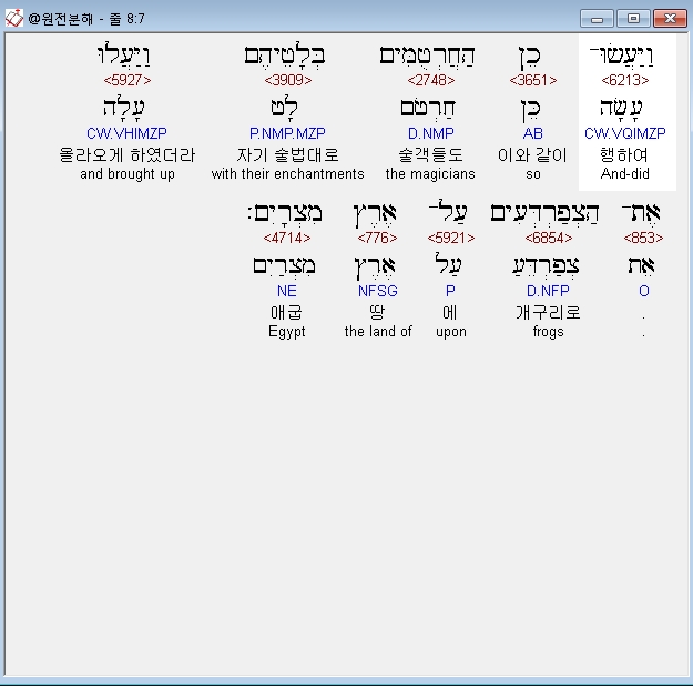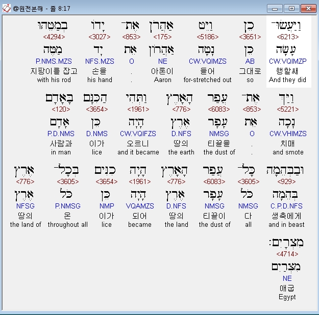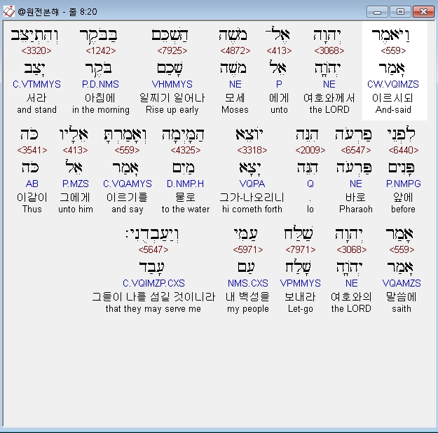 | 히브리어 출애굽기 7장 전체 원어 원문 성경 공부 주석 강해 설교 해설 해석 (0) | 2020.09.26 |
