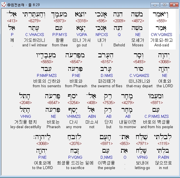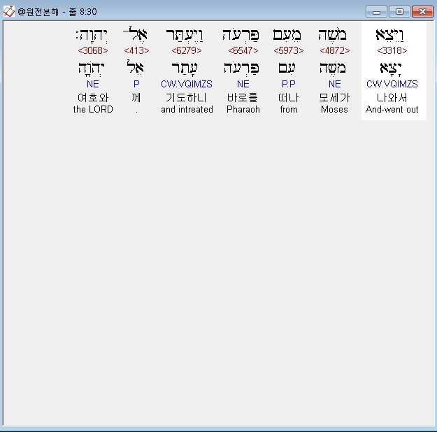 히브리어구약BHS,30 וַיֵּצֵא מֹשֶׁה מֵעִם פַּרְעֹה וַיֶּעְתַּר אֶל־יְהוָה׃