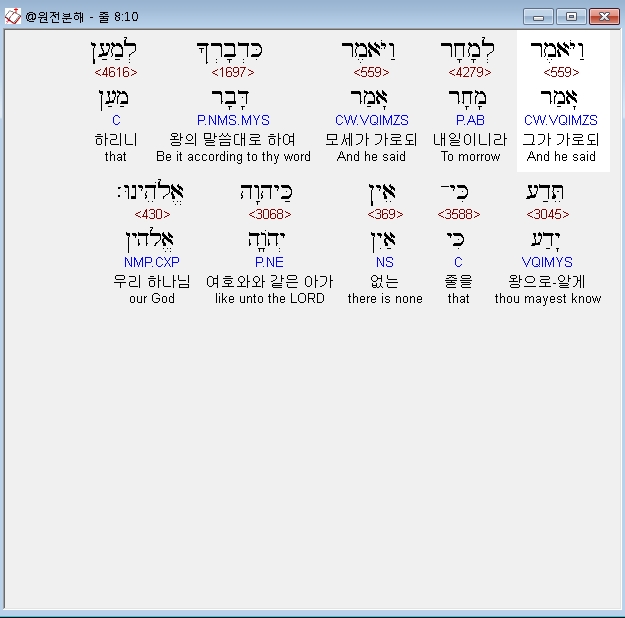 | 히브리어 출애굽기 10장 전체 원어 원문 성경 공부 주석 강해 설교 해설 해석 (0) | 2020.09.26 |