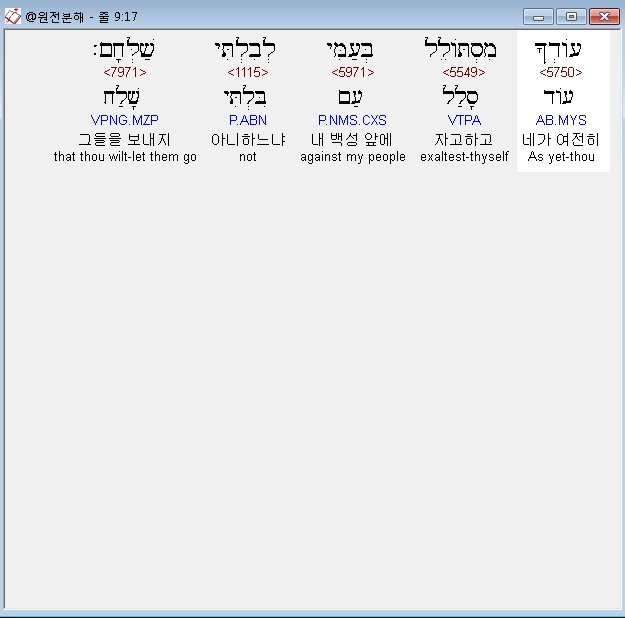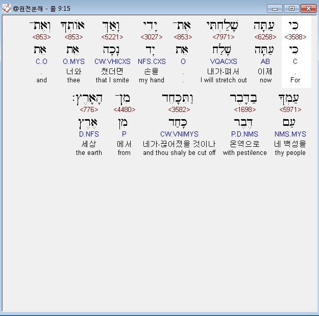 | 히브리어 출애굽기 11장 전체 원어 원문 성경 공부 주석 강해 설교 해설 해석 (0) | 2020.09.26 |