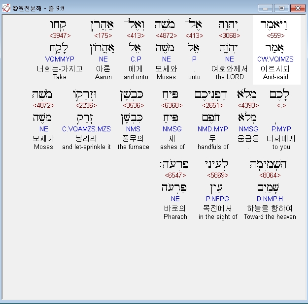| 히브리어 출애굽기 8장 전체 원어 원문 성경 공부 주석 강해 설교 해설 해석 (0) | 2020.09.26 |