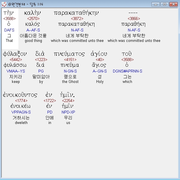 헬라어신약Stephanos,14 την καλην παρακαταθηκην φυλαξον δια πνευματος αγιου του ενοικουντος εν ημιν