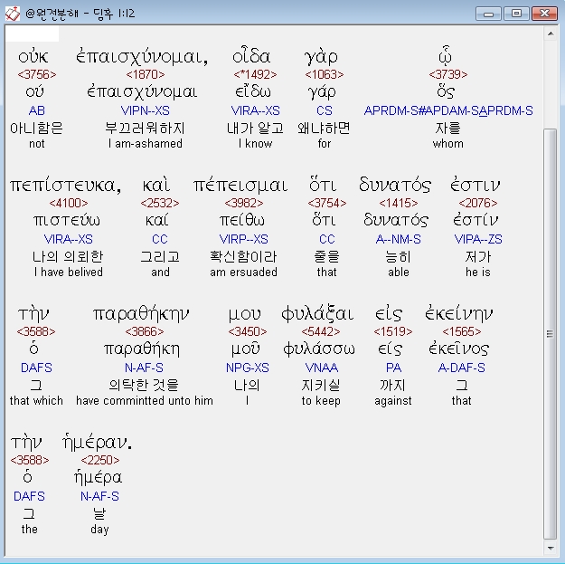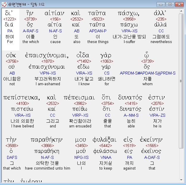 | 헬라어 디모데후서 3장 전체 원어 원문 성경 공부 주석 강해 설교 해설 해석 (0) | 2020.10.28 |