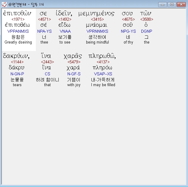 헬라어신약Stephanos,4 επιποθων σε ιδειν μεμνημενος σου των δακρυων ινα χαρας πληρωθω