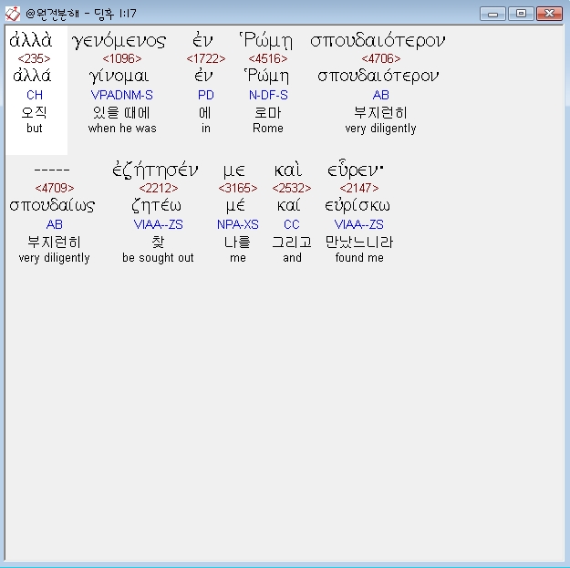 헬라어신약Stephanos,17 αλλα γενομενος εν ρωμη σπουδαιοτερον εζητησεν με και ευρεν