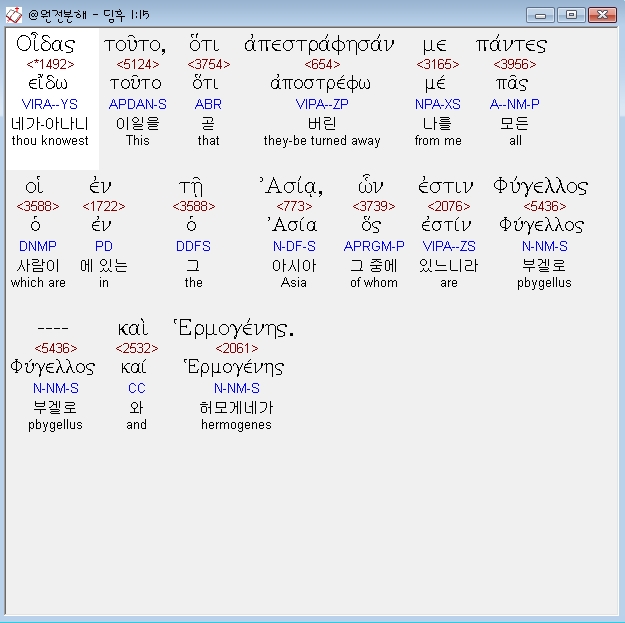 헬라어신약Stephanos,15 οιδας τουτο οτι απεστραφησαν με παντες οι εν τη ασια ων εστιν φυγελλος και ερμογενης