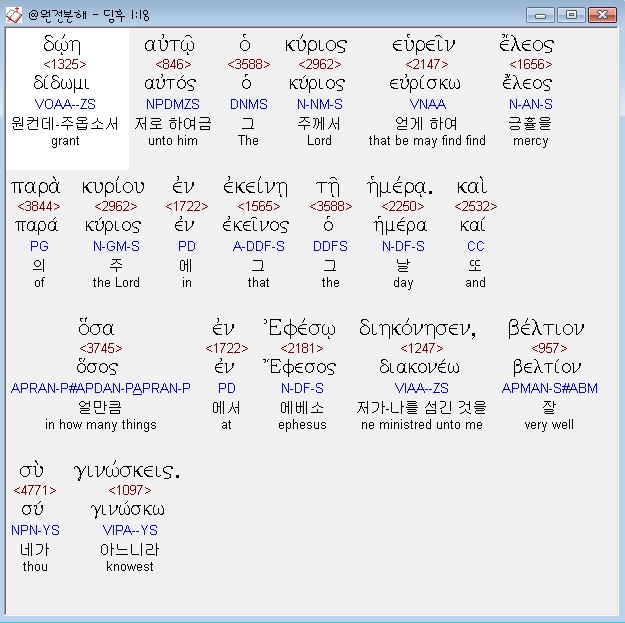헬라어신약Stephanos,18 δωη αυτω ο κυριος ευρειν ελεος παρα κυριου εν εκεινη τη ημερα και οσα εν εφεσω διηκονησεν βελτιον συ γινωσκεις