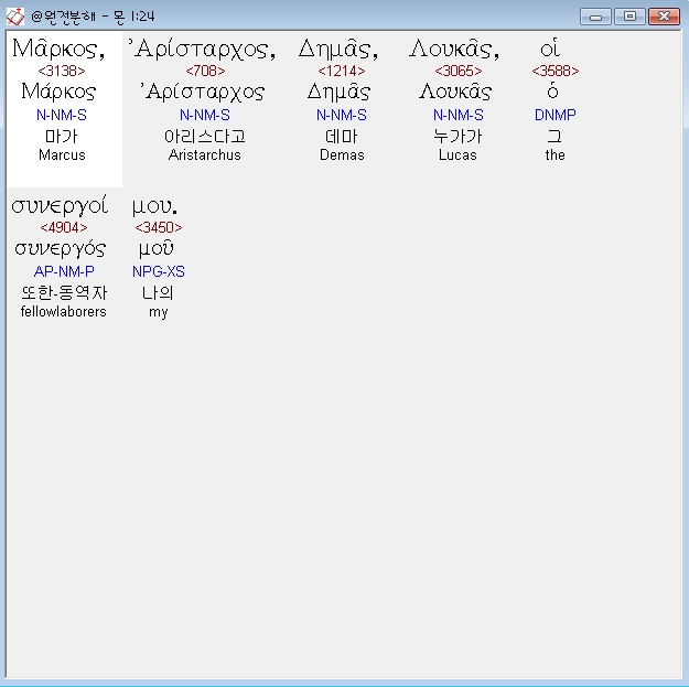헬라어신약Stephanos,24 μαρκος αρισταρχος δημας λουκας οι συνεργοι μου