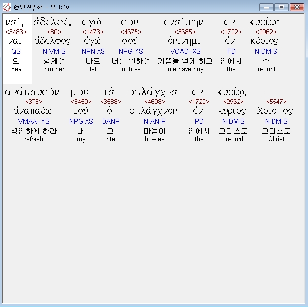 헬라어신약Stephanos,20 ναι αδελφε εγω σου οναιμην εν κυριω αναπαυσον μου τα σπλαγχνα εν κυριω