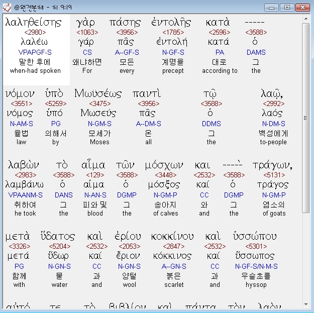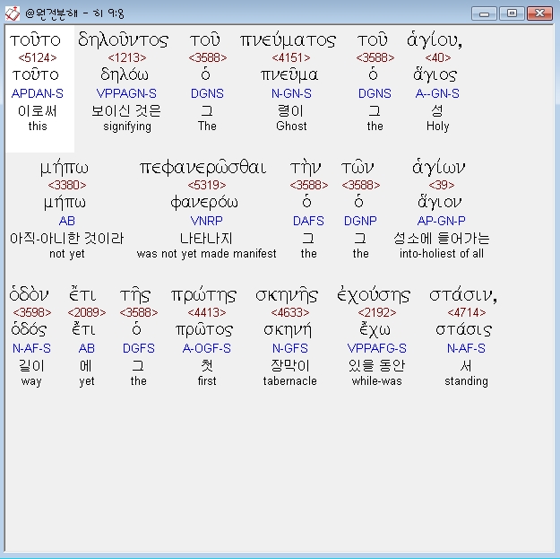 | 헬라어 히브리서 8장 전체 원어 원문 성경 공부 주석 강해 설교 해설 해석 (0) | 2020.10.28 |