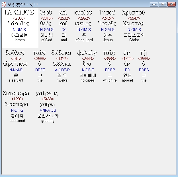 헬라어신약Stephanos,1 ιακωβος θεου και κυριου ιησου χριστου δουλος ταις δωδεκα φυλαις ταις εν τη διασπορα χαιρειν