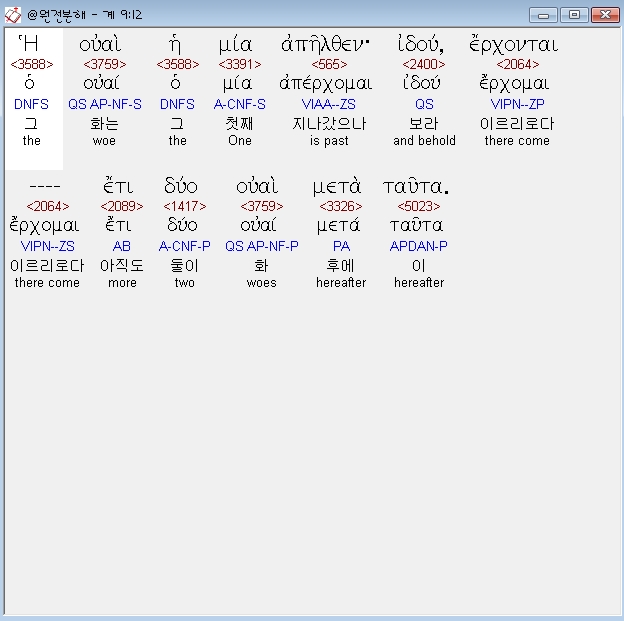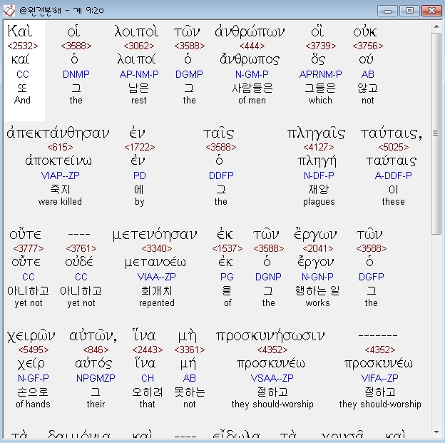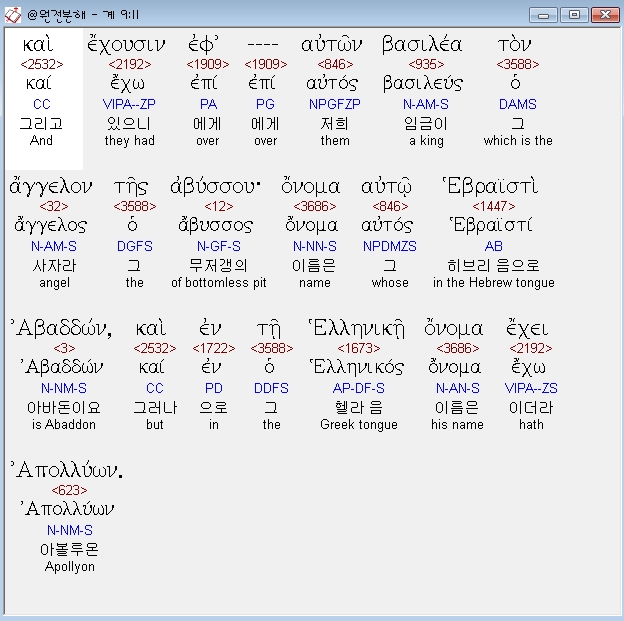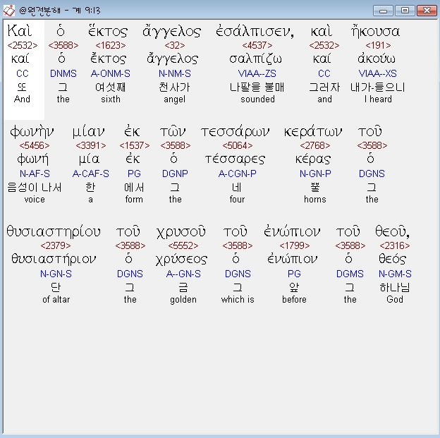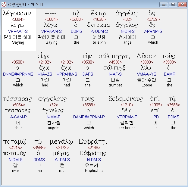 | 헬라어 요한계시록 11장 전체 원어 원문 성경 공부 주석 강해 설교 해설 해석 (0) | 2020.10.29 |