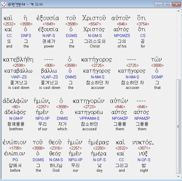 | 헬라어 요한계시록 11장 전체 원어 원문 성경 공부 주석 강해 설교 해설 해석 (0) | 2020.10.29 |