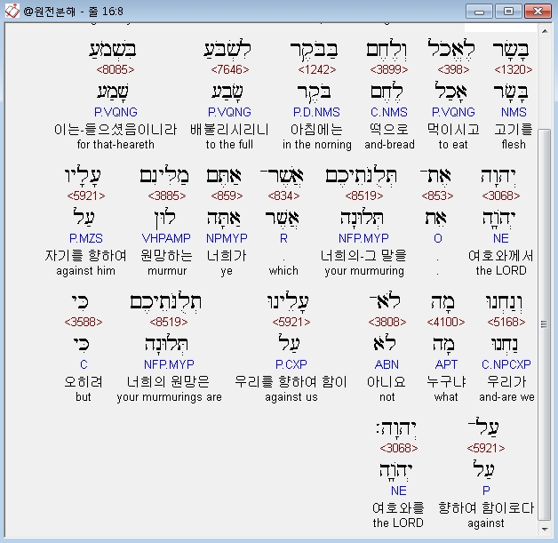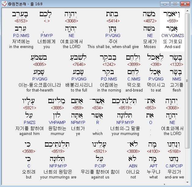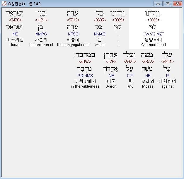 헬라어구약Septuagint,2 διεγογγυζεν πασα συναγωγη υιων ισραηλ επι μωυσην και ααρων