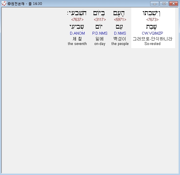 히브리어구약BHS,30 וַיִּשְׁבְּתוּ הָעָם בַּיֹּום הַשְּׁבִעִי׃