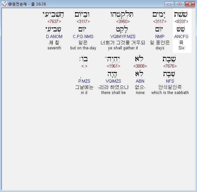 헬라어구약Septuagint,5 και εσται τη ημερα τη εκτη και ετοιμασουσιν ο εαν εισενεγκωσιν και εσται διπλουν ο εαν συναγαγωσιν το καθ' ημεραν εις ημεραν