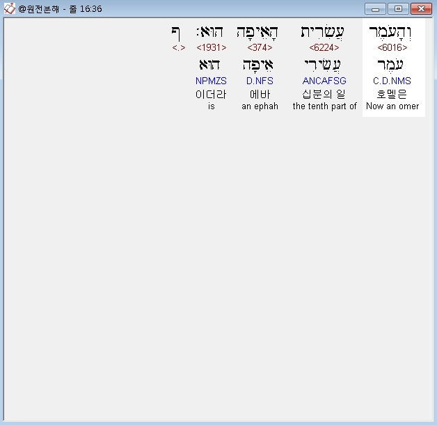 히브리어구약BHS,36 וְהָעֹמֶר עֲשִׂרִית הָאֵיפָה הוּא׃ ף