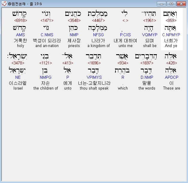 히브리어구약BHS,6 וְאַתֶּם תִּהְיוּ־לִי מַמְלֶכֶת כֹּהֲנִים וְגֹוי קָדֹושׁ אֵלֶּה הַדְּבָרִים אֲשֶׁר תְּדַבֵּר אֶל־בְּנֵי יִשְׂרָאֵל׃