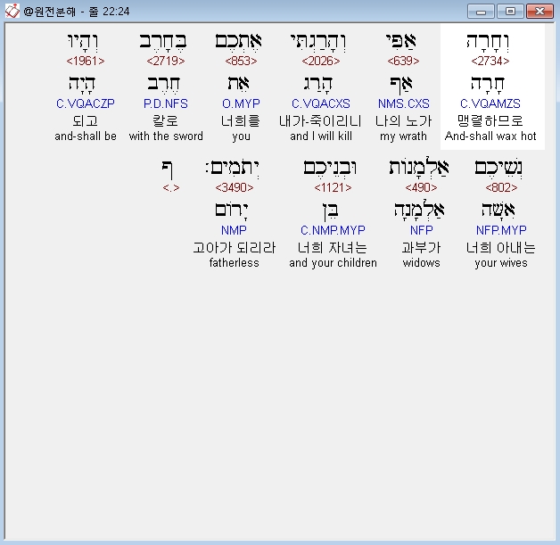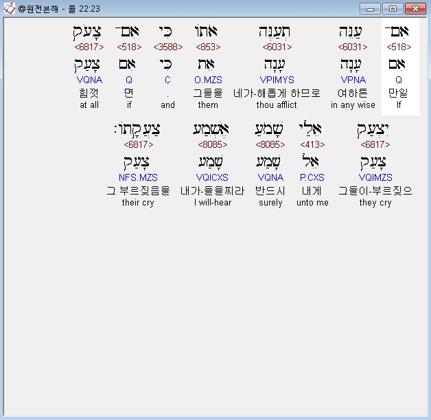 | 히브리어 출애굽기 23장 전체 원어 원문 성경 공부 주석 강해 설교 해설 해석 (0) | 2020.09.26 |
