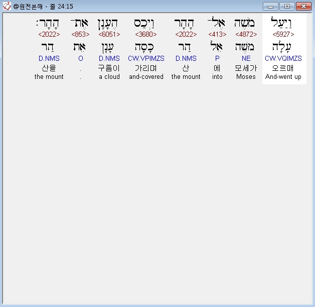히브리어구약BHS,15 וַיַּעַל מֹשֶׁה אֶל־הָהָר וַיְכַס הֶעָןָן אֶת־הָהָר׃