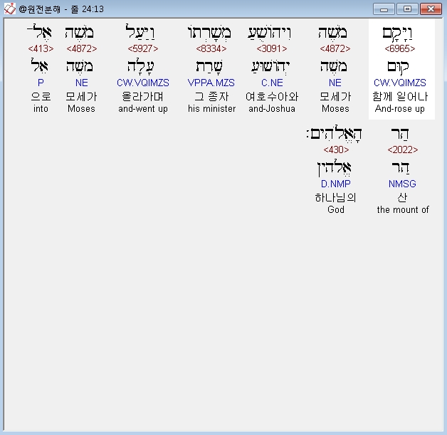 헬라어구약Septuagint,13 και αναστας μωυσης και ιησους ο παρεστηκως αυτω ανεβησαν εις το ορος του θεου