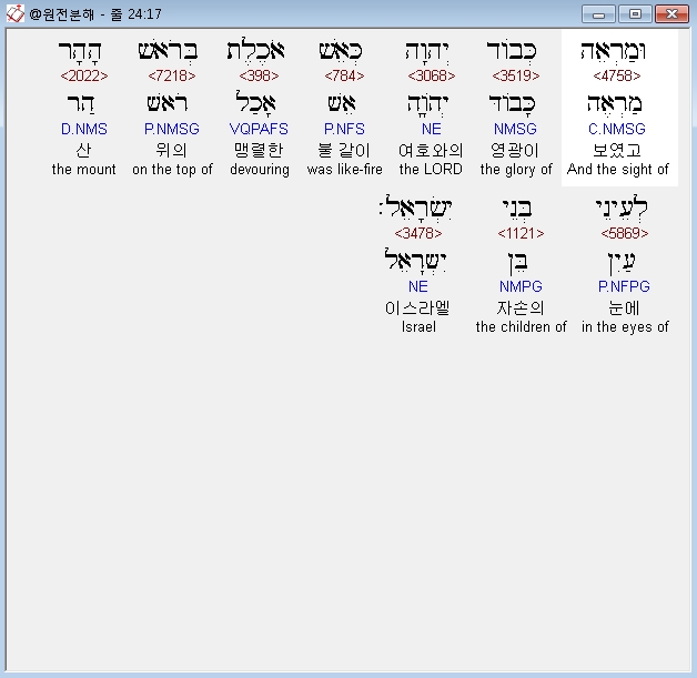 헬라어구약Septuagint,17 το δε ειδος της δοξης κυριου ωσει πυρ φλεγον επι της κορυφης του ορους εναντιον των υιων ισραηλ