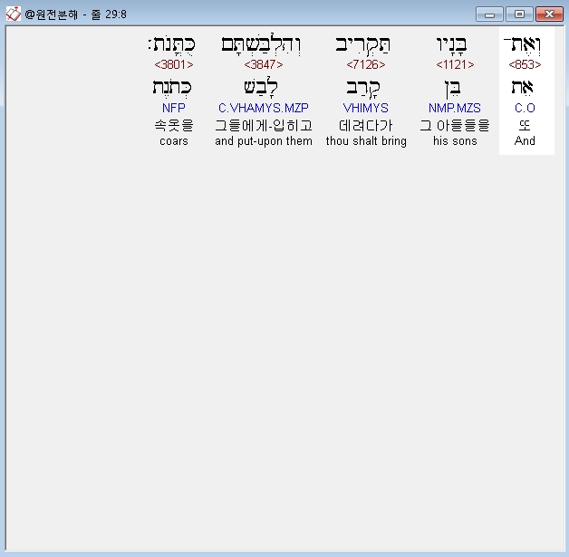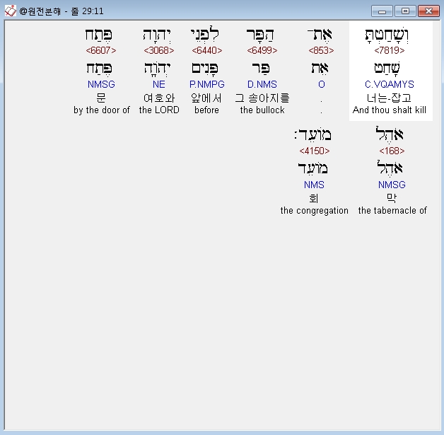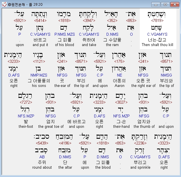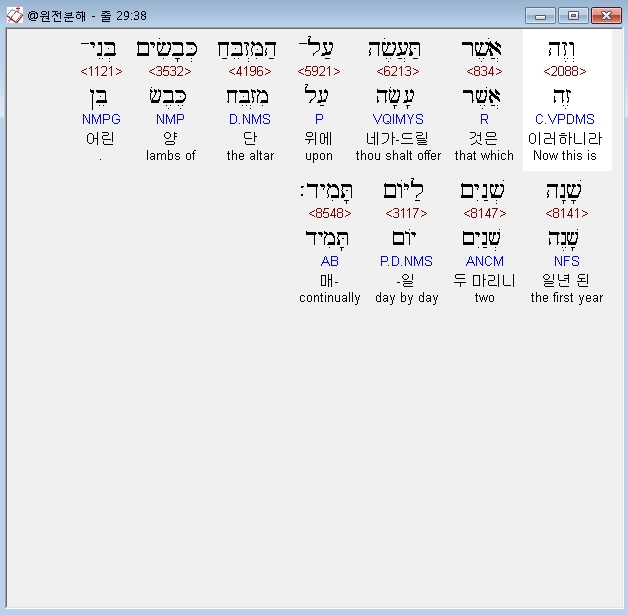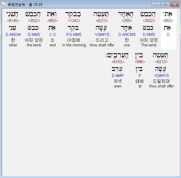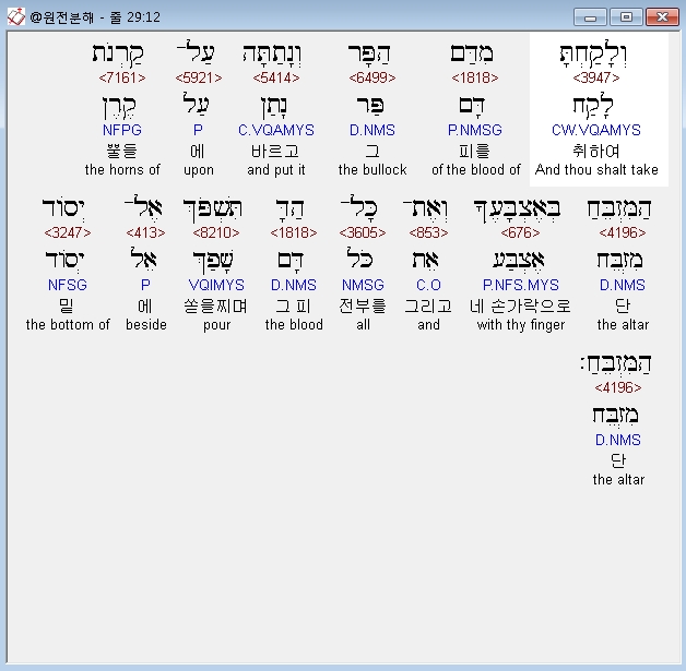 | 히브리어 출애굽기 30장 전체 원어 원문 성경 공부 주석 강해 설교 해설 해석 (0) | 2020.09.26 |