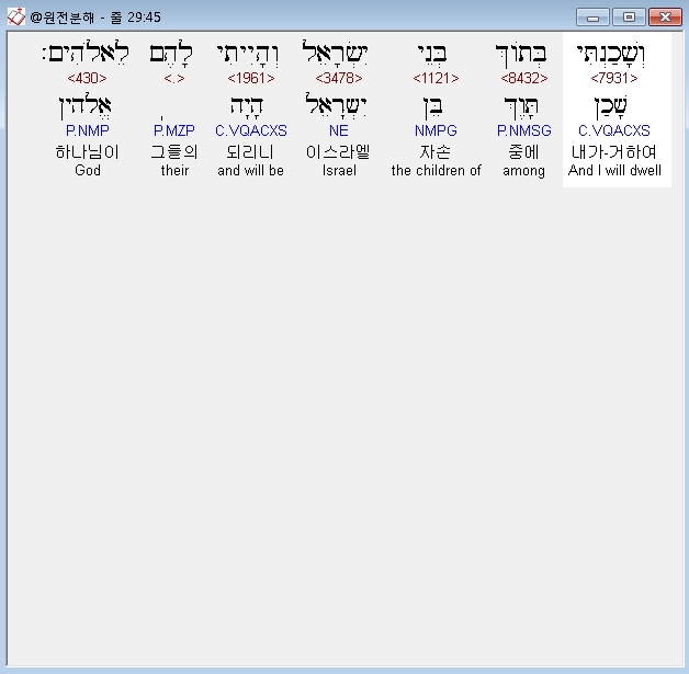 히브리어구약BHS,45 וְשָׁכַנְתִּי בְּתֹוךְ בְּנֵי יִשְׂרָאֵל וְהָיִיתִי לָהֶם לֵאלֹהִים׃