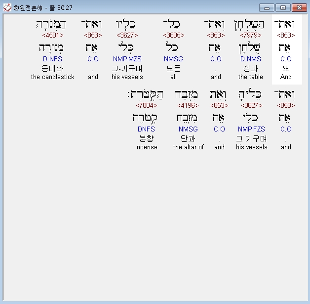 | 히브리어 출애굽기 31장 전체 원어 원문 성경 공부 주석 강해 설교 해설 해석 (0) | 2020.09.26 |