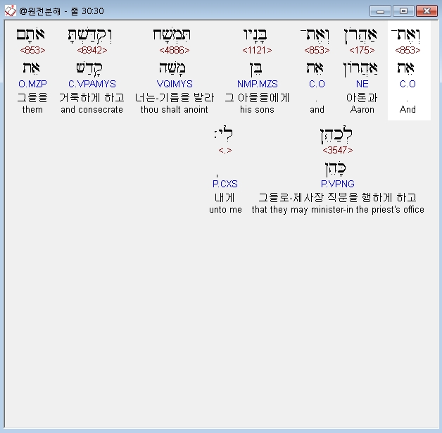 | 히브리어 출애굽기 29장 전체 원어 원문 성경 공부 주석 강해 설교 해설 해석 (0) | 2020.09.26 |