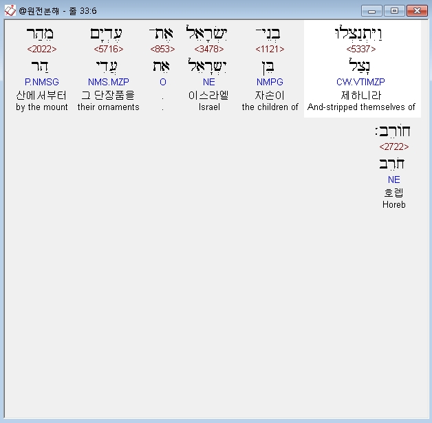 히브리어구약BHS,6 וַיִּתְנַצְּלוּ בְנֵי־יִשְׂרָאֵל אֶת־עֶדְיָם מֵהַר חֹורֵב׃