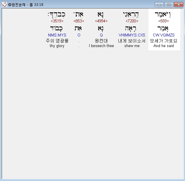 히브리어구약BHS,18 וַיֹּאמַר הַרְאֵנִי נָא אֶת־כְּבֹדֶךָ׃