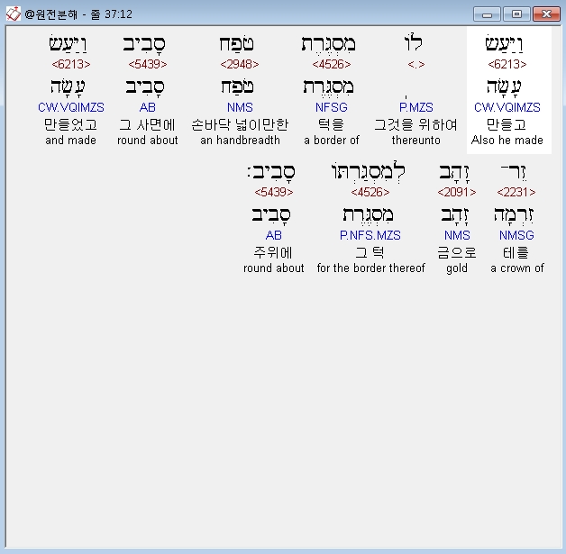 | 히브리어 출애굽기 38장 전체 원어 원문 성경 공부 주석 강해 설교 해설 해석 (0) | 2020.09.26 |