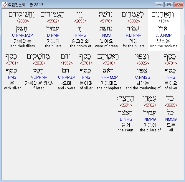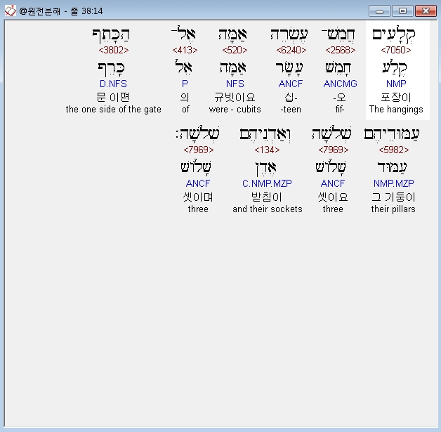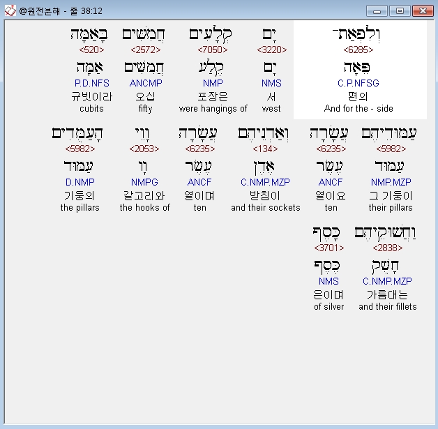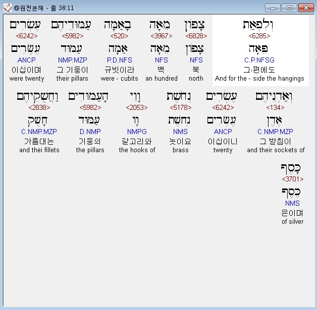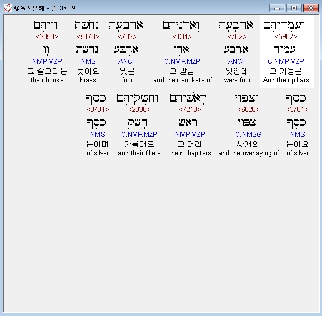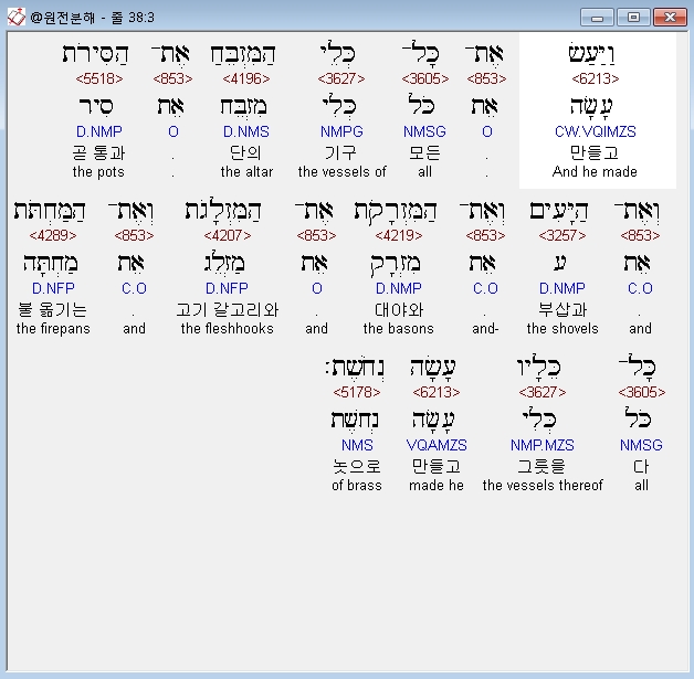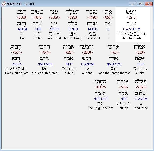 | 히브리어 출애굽기 37장 전체 원어 원문 성경 공부 주석 강해 설교 해설 해석 (0) | 2020.09.26 |