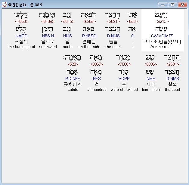 | 히브리어 출애굽기 39장 전체 원어 원문 성경 공부 주석 강해 설교 해설 해석 (0) | 2020.09.26 |