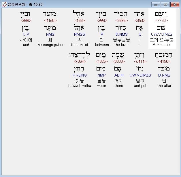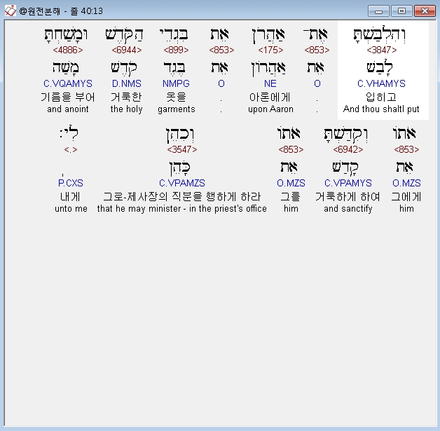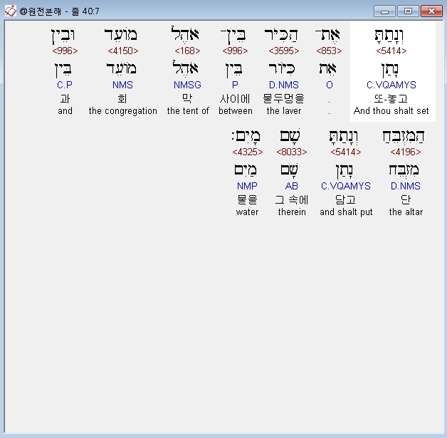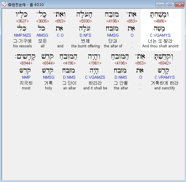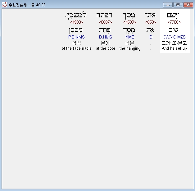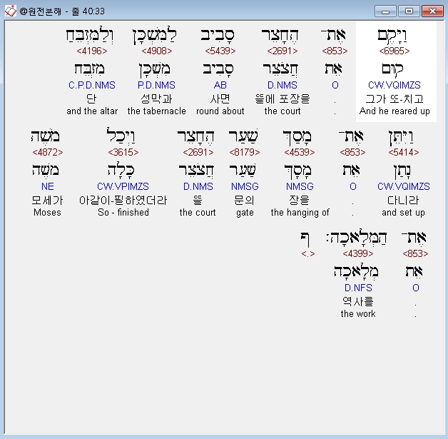 | 히브리어 출애굽기 39장 전체 원어 원문 성경 공부 주석 강해 설교 해설 해석 (0) | 2020.09.26 |
