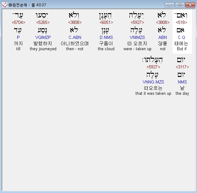 히브리어구약BHS,37 וְאִם־לֹא יֵעָלֶה הֶעָןָן וְלֹא יִסְעוּ עַד־יֹום הֵעָלֹתֹו׃