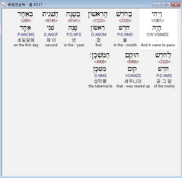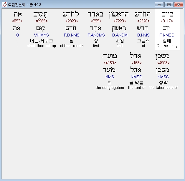 히브리어구약BHS,2 בְּיֹום־הַחֹדֶשׁ הָרִאשֹׁון בְּאֶחָד לַחֹדֶשׁ תָּקִים אֶת־מִשְׁכַּן אֹהֶל מֹועֵד׃