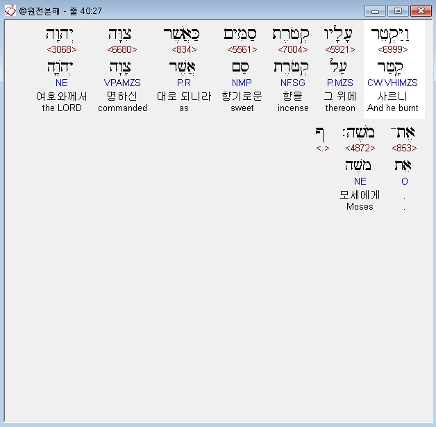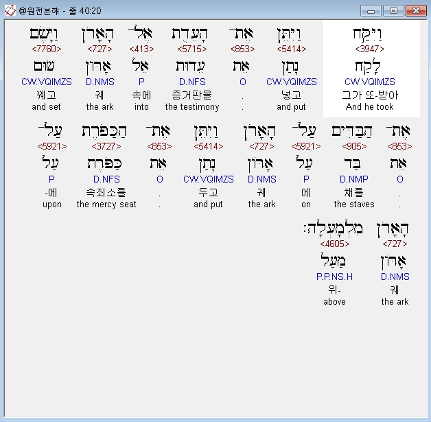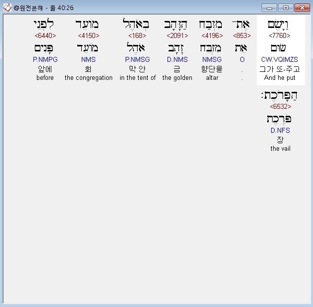 | 히브리어 출애굽기 37장 전체 원어 원문 성경 공부 주석 강해 설교 해설 해석 (0) | 2020.09.26 |