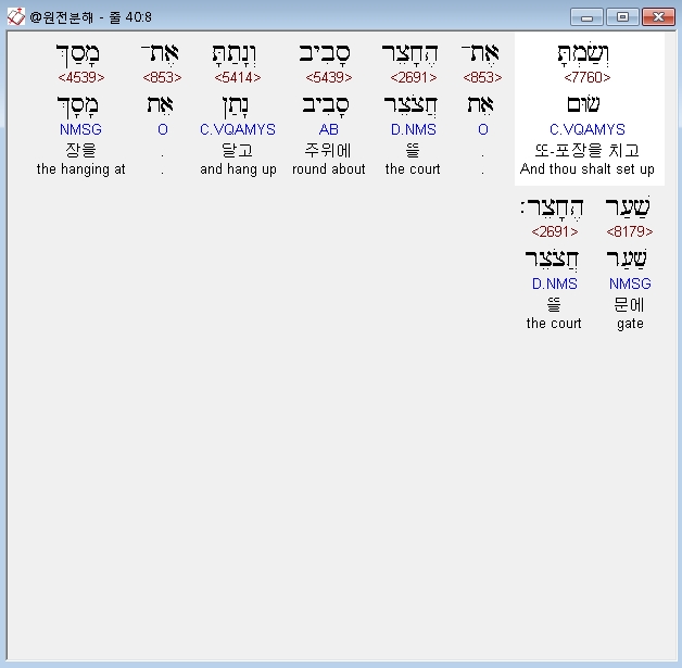 | 히브리어 출애굽기 38장 전체 원어 원문 성경 공부 주석 강해 설교 해설 해석 (0) | 2020.09.26 |