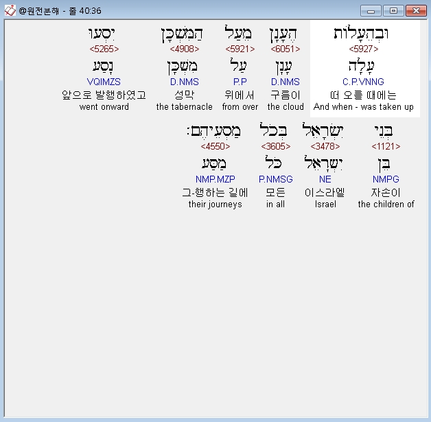 헬라어구약Septuagint,37 ει δε μη ανεβη η νεφελη ουκ ανεζευγνυσαν εως της ημερας ης ανεβη η νεφελη